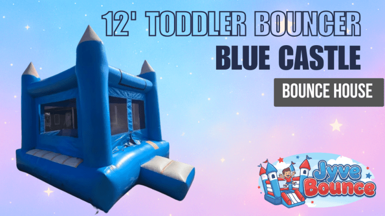 The Toddler Blue Castle Bounce House is designed just for the younger crowd. Measuring 12' x 12' with safe mesh walls, it allows toddlers to jump, play, and have fun in a secure environment.