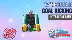 Go for the goal with the inflatable Soccer Challenge! Aim well and kick the ball past the goalie to score! This inflatable is perfect for sporting events, tailgates, family entertainment centers, backyard parties, or indoor play centers. It is also a great way to practice athletic skills.
